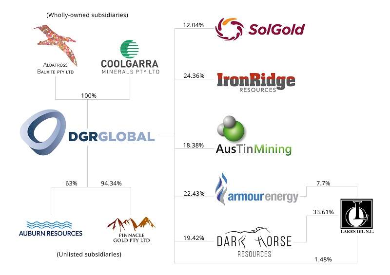DGR’s five strategic publicly listed investments include SolGold (LSE and TSX: SOLG), Armour Energy (ASX:AJQ), IronRidge Resources (AIM: IRR), Dark Horse Resources (ASX: DHR) and Aus Tin Mining (ASX: ANW), which cover a wide range of demanded commodities such as copper, gold, lithium, cobalt, nickel, tin, oil, gas, iron ore and bauxite. These companies were all created, seeded and floated by DGR.