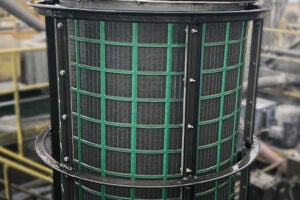 The G-Vault is composed of several independent screen sections retained in a 304 stainless steel cage. The use of replaceable screen sections reduces maintenance costs by permitting replacement of only a heavily worn section, rather than an entire screen.