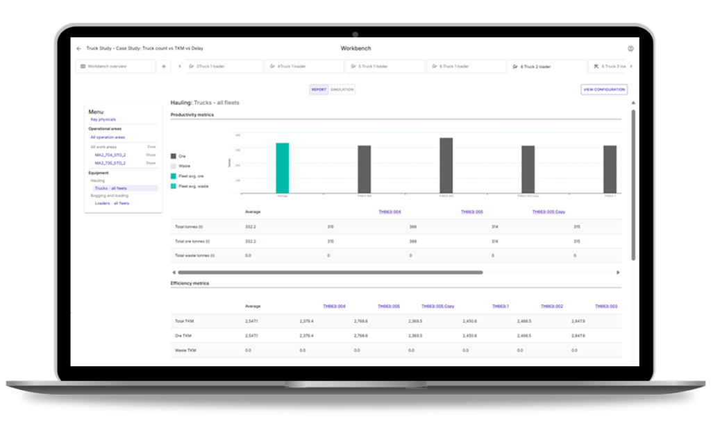 Reporting and visualisation features add another layer of value. Performance indicators such as tonne-kilometers per shift, loader cycle times, and fleet utilisation are tracked and presented in clear, actionable charts and tables. The 3D playback tool allows teams from different departments—engineering, operations, and management—to see the same data and develop a shared understanding of the challenges and opportunities ahead. This supports better alignment and more effective decision-making across the organisation.