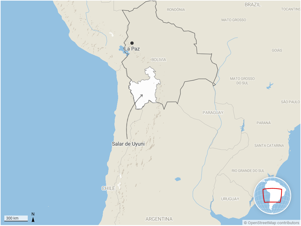 The blindingly white salt flats of the Salar de Uyuni stretch across thousands of square kilometres in south-western Bolivia. On any given day, the Salar teems with hundreds of tourist excursion jeeps, harvester machines and specialist pumps for deep extraction of the vast lithium reserves hidden beneath the 8m-thick crust of the world’s largest salt flats.