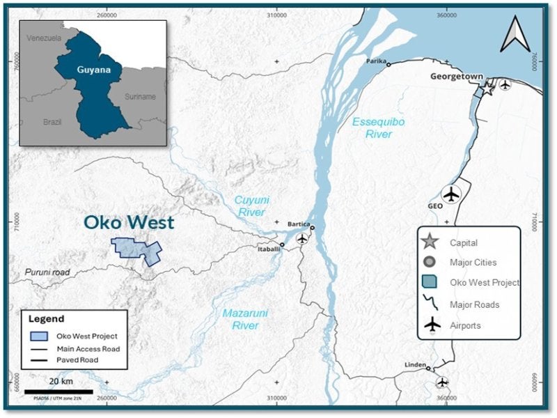 The Oko West gold project lies approximately 100km southwest of Georgetown, Guyana’s capital, and about 50km from Bartica, the administrative centre of Region 7.