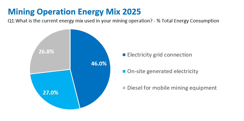 Across the world’s mines, the power mix is split. On average, about half of a site’s energy use is grid electricity – for crushers, mills and ventilation. But diesel, that drives haul trucks, loaders and ancillary kit, remains prominent.[1]