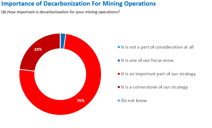 But the mining sector faces challenges that are driving change. Three-quarters of mining operators say greenhouse gas (GHG) emissions reduction is important to strategy, and a similar share have established specific carbon intensity reduction targets. Many go further, describing lowering emissions as a cornerstone of their future strategies.1